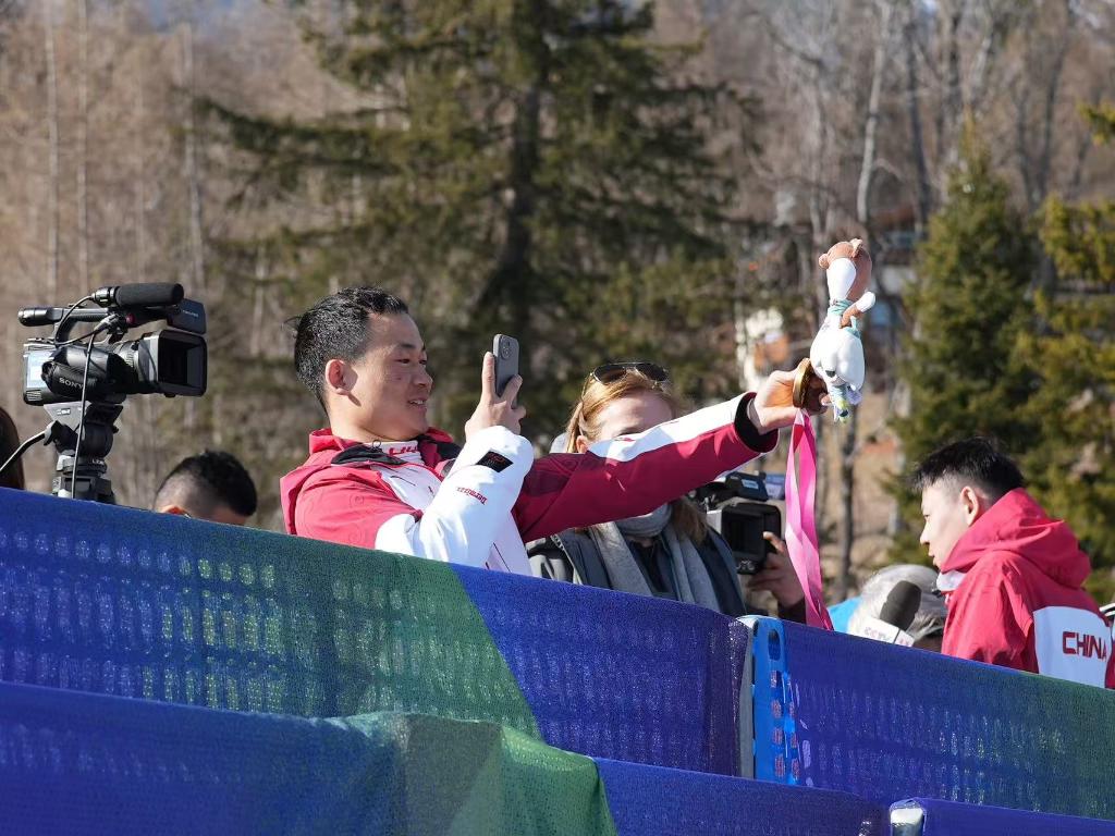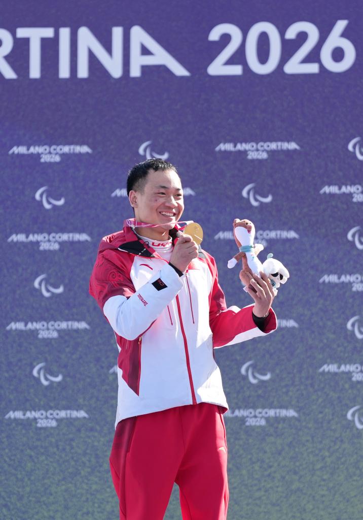 8日的米兰-科尔蒂纳冬残奥会残奥单板滑雪男子障碍追逐LL1级项目的颁奖仪式过后,武中伟举起手机,以环绕赛场的山峰为背景,给手中的金牌和吉祥物拍了一张照。尽管自己并未入镜,但整个采访区都能看得见他脸上的微笑。